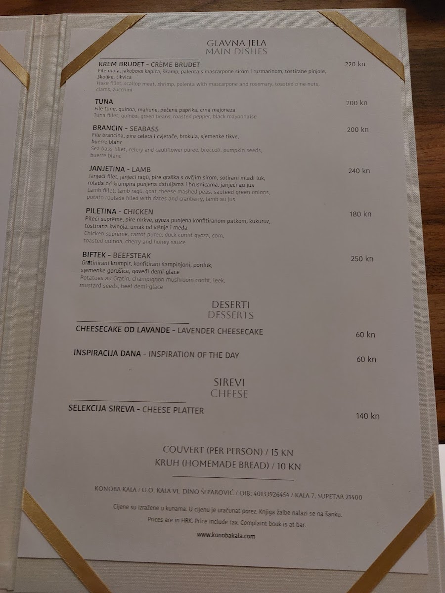 Overall, the menu at Konoba Kala matches its surroundings by blending island charm with tasteful elegance, making each meal a quiet moment of pleasure, whether you’re stopping in after a ferry ride or settling in for an extended evening.